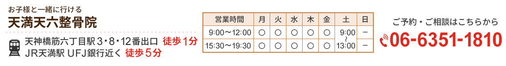 そんな方は、天満天六整骨院へご相談ください。膝にやさしい身体づくりを一緒に進めていきましょう。